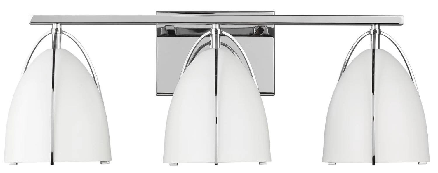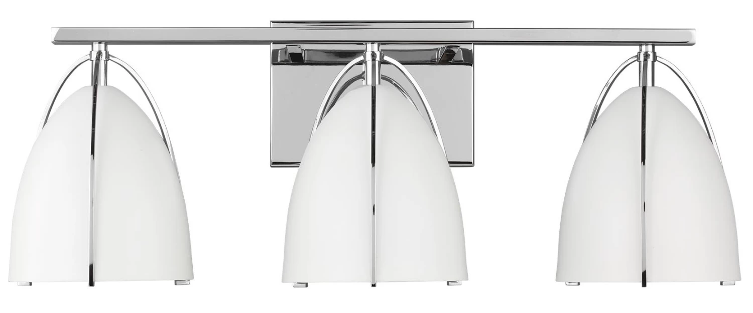 The Norman Bathroom Vanity Light brings a clean tailored appearance to your interior space. The dome shaped shades are accented with contrasting steel that adds beauty to your room. Available in a 2 and 3 light with Incandescent or LED lamp options. LED option is Title 24 Compliant.