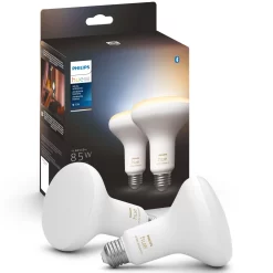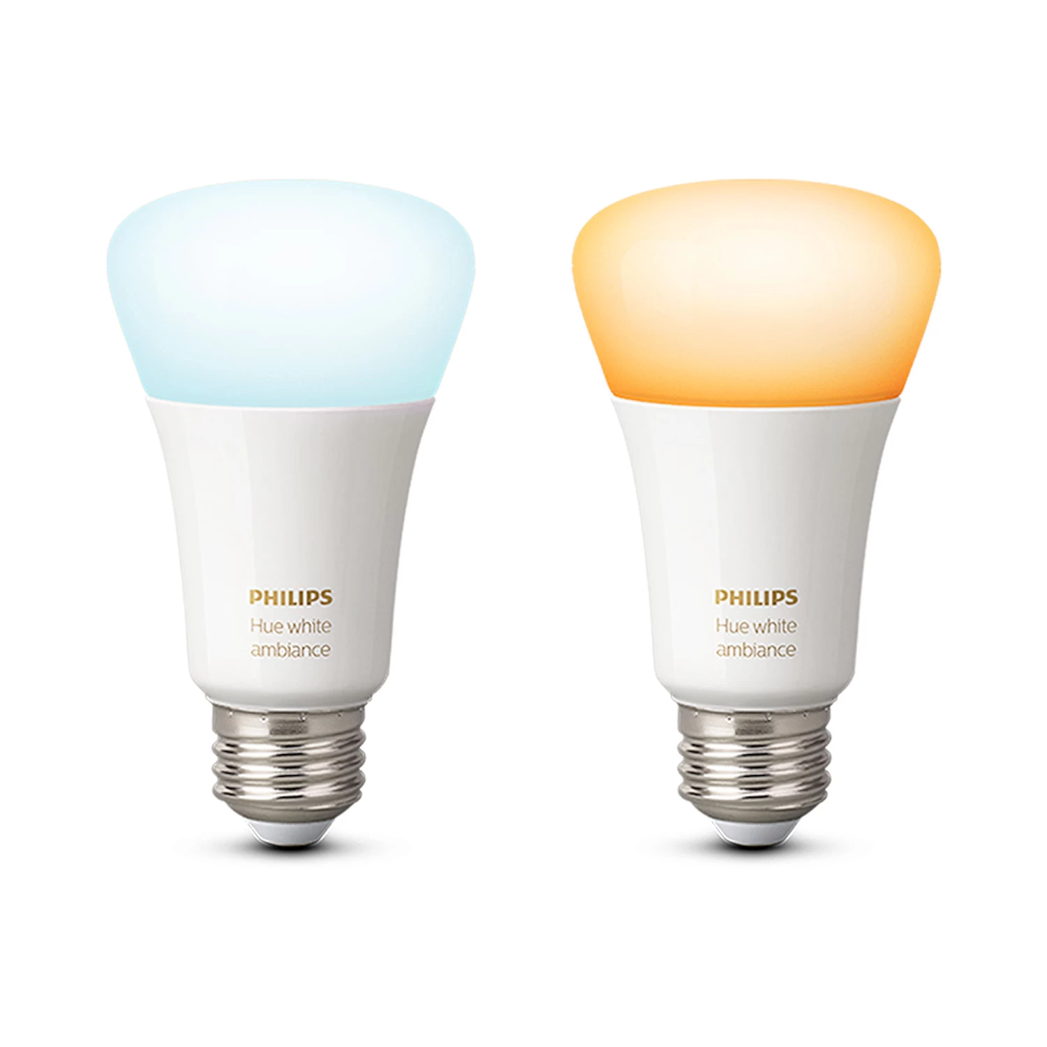 The Hue A19 White Ambiance Smart Bulb is dimmable from warm to cool and offers over 50,000 shades of white light. Control instantly via Bluetooth in one room, or pair with the Hue bridge (sold separately) to unlock the full suite of smart lighting features. Sold as a set of 2.