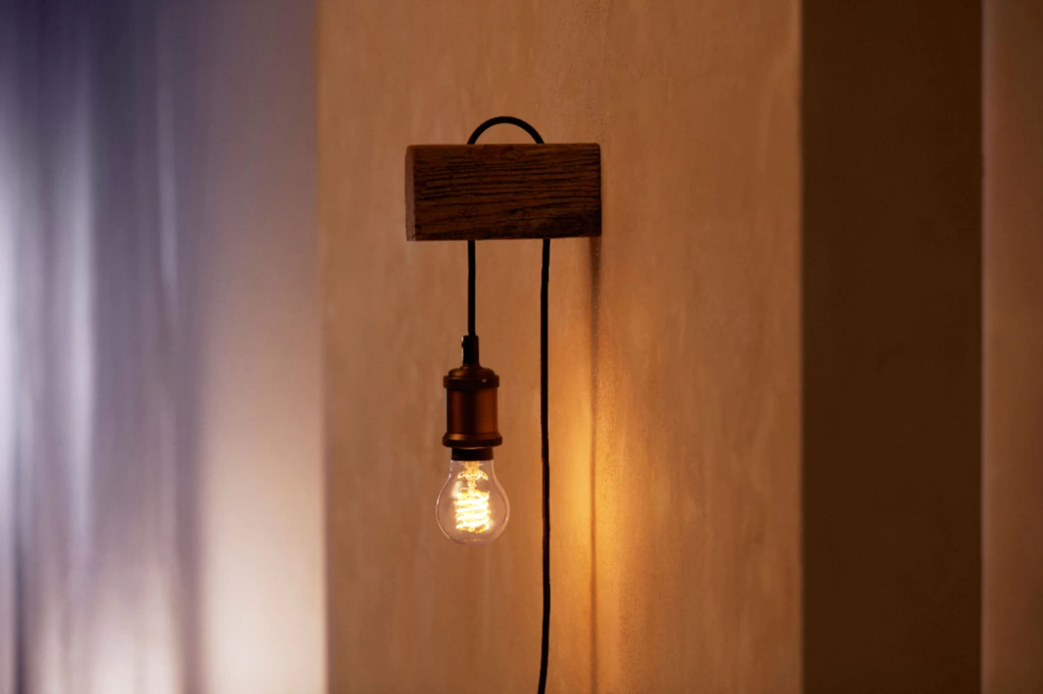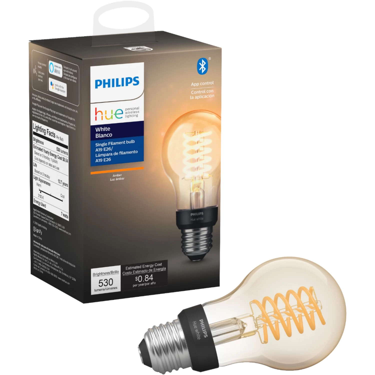 The Hue A19 White Filament Smart Bulb will bring a vintage style to any space. It features a coiled filament design inside of a transparent globe. It offers fully dimmable controls and it can be used with Bluetooth or paired with a Hue Bridge (sold separately).