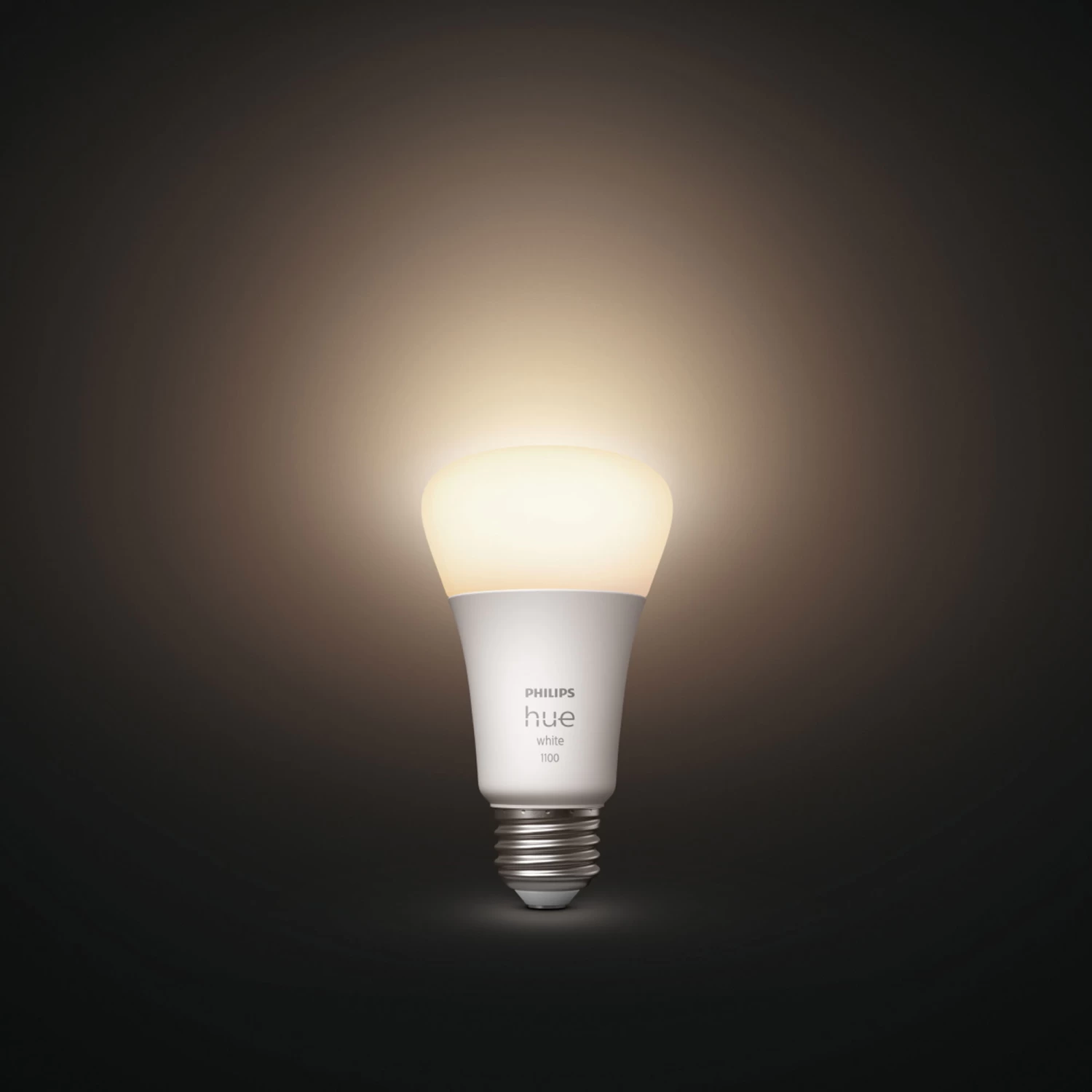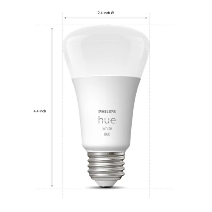 The Hue A19 Bluetooth Smart Bulb Starter Kit includes two A19 medium base bulbs and a Hue Bridge, the hub of Hue’s smart lighting system. The two Philips Hue A19 bulbs provide a sufficient level of warm white light that is bright enough to read on the couch, listen to music, or simply relax in your bedroom. The bulbs offer instant dimming from bright daylight to low nightlights and are suitable for most light fixtures.