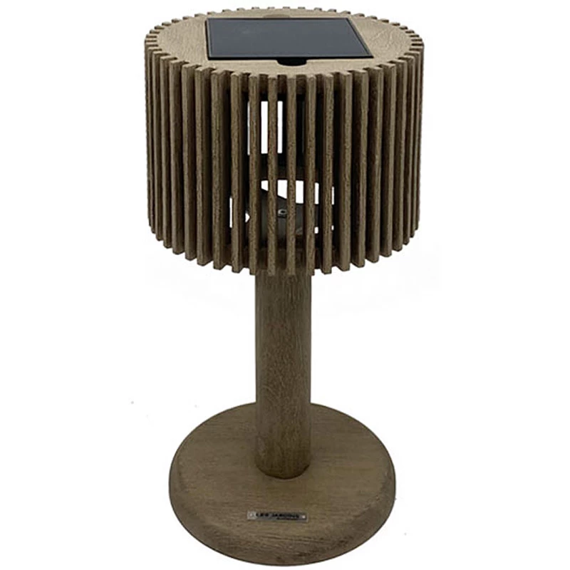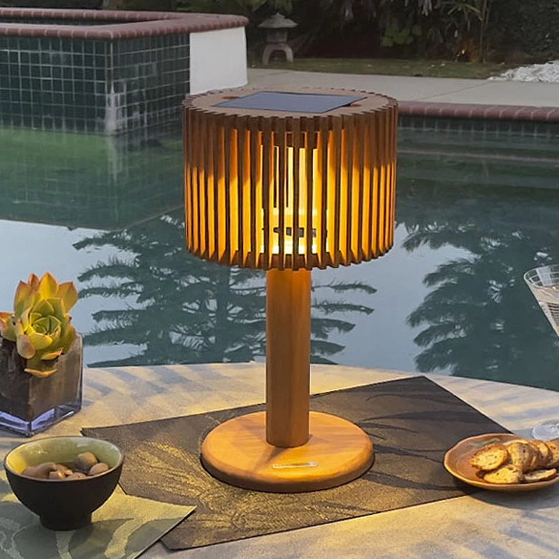 The Pixy Outdoor Solar Portable Table Lamp goes anywhere with you, from your balcony or patio to the poolside lounge. Its teakwood base and shade offer warm, natural character that creates a welcoming environment.