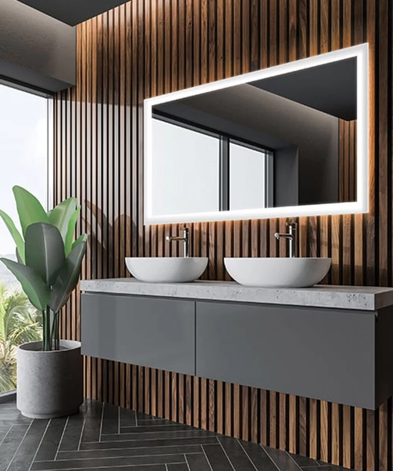 The Silhouette Rectangle Lighted Mirror provides a soft halo of light glowing around the perimeter of the mirror. Diffusers on the outside provide for a softer glow. Corrosion resistant OmegaMirror glass. Choice of standard forward phase control or with Keen dimming.