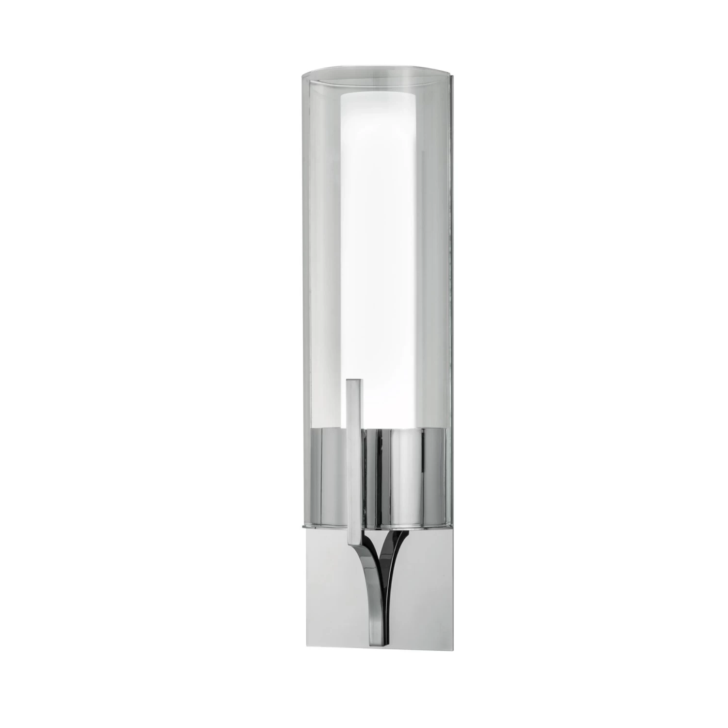 The Slope Wall Sconce has a sleek clean profile, perfect in any space of your home. A Clear cylinder of glass surrounds an inner Frosted tube. Finished in Brushed Nickel or Chrome. ADA compliant. Damp location rated. ETL and UL listed.