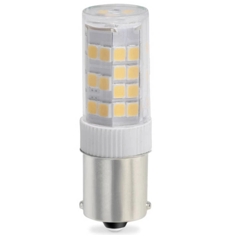 The BA15s Single Contact Bayonet Base 4.5 Watt 12 Volt small format LED mini bulb is a retrofit for halogen and xenon lamps. Equivalent to a 40 watt incandescent. Dimmable with low voltage electronic dimmers. Sold as a 2-pack.