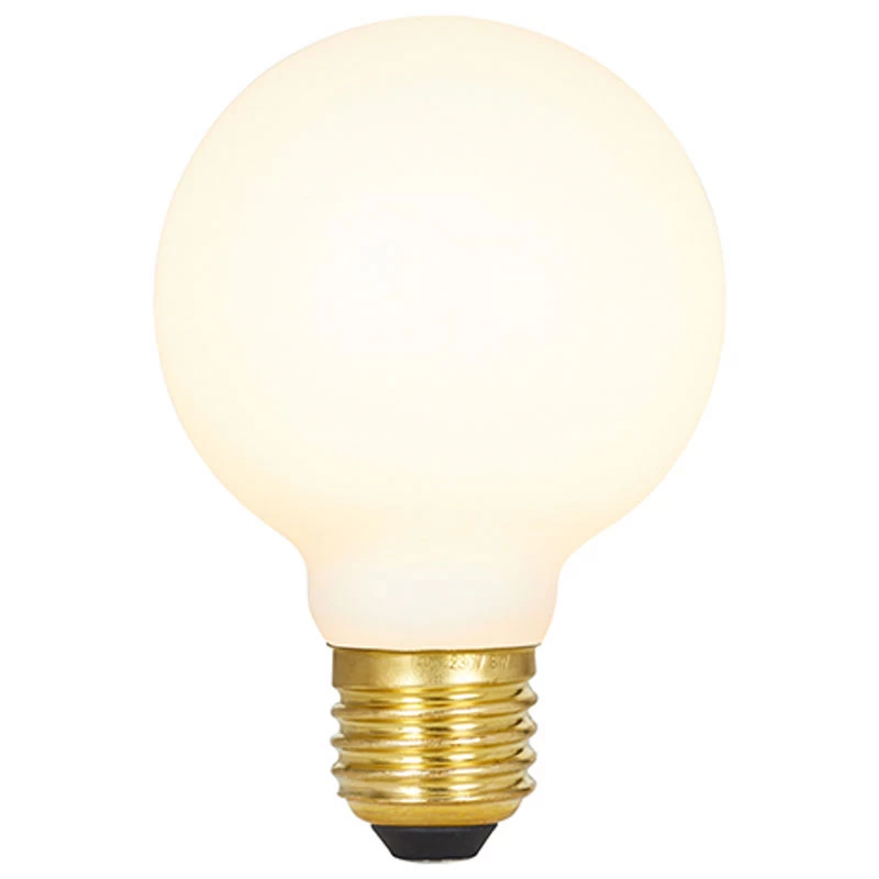 The Sphere II Globe G25 Medium Base Warm Dim Bulb features Dim to Warm color temperature offering a warm and amber glow when dimmed.