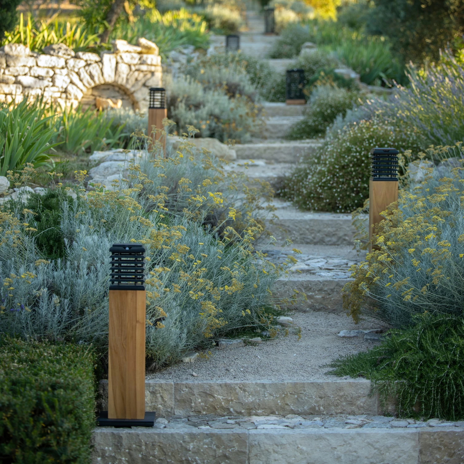 The Tekura Outdoor Solar Path Light is a cordless lamp that is highly adaptable to any environment, illuminating outdoor spaces including seating areas and pathways while bringing refinement with its zen style. It elegantly combines teakwood with high-performance Italian HPL in a slate grey finish.
