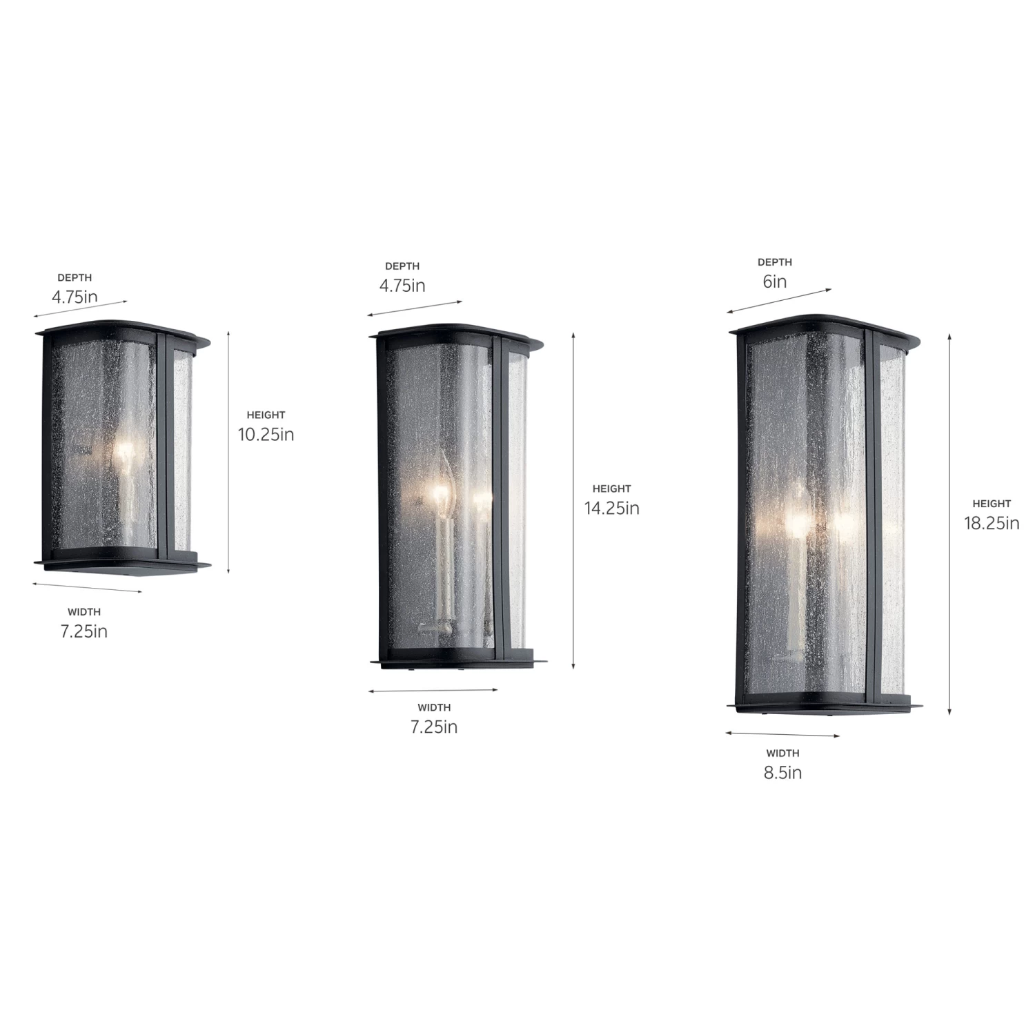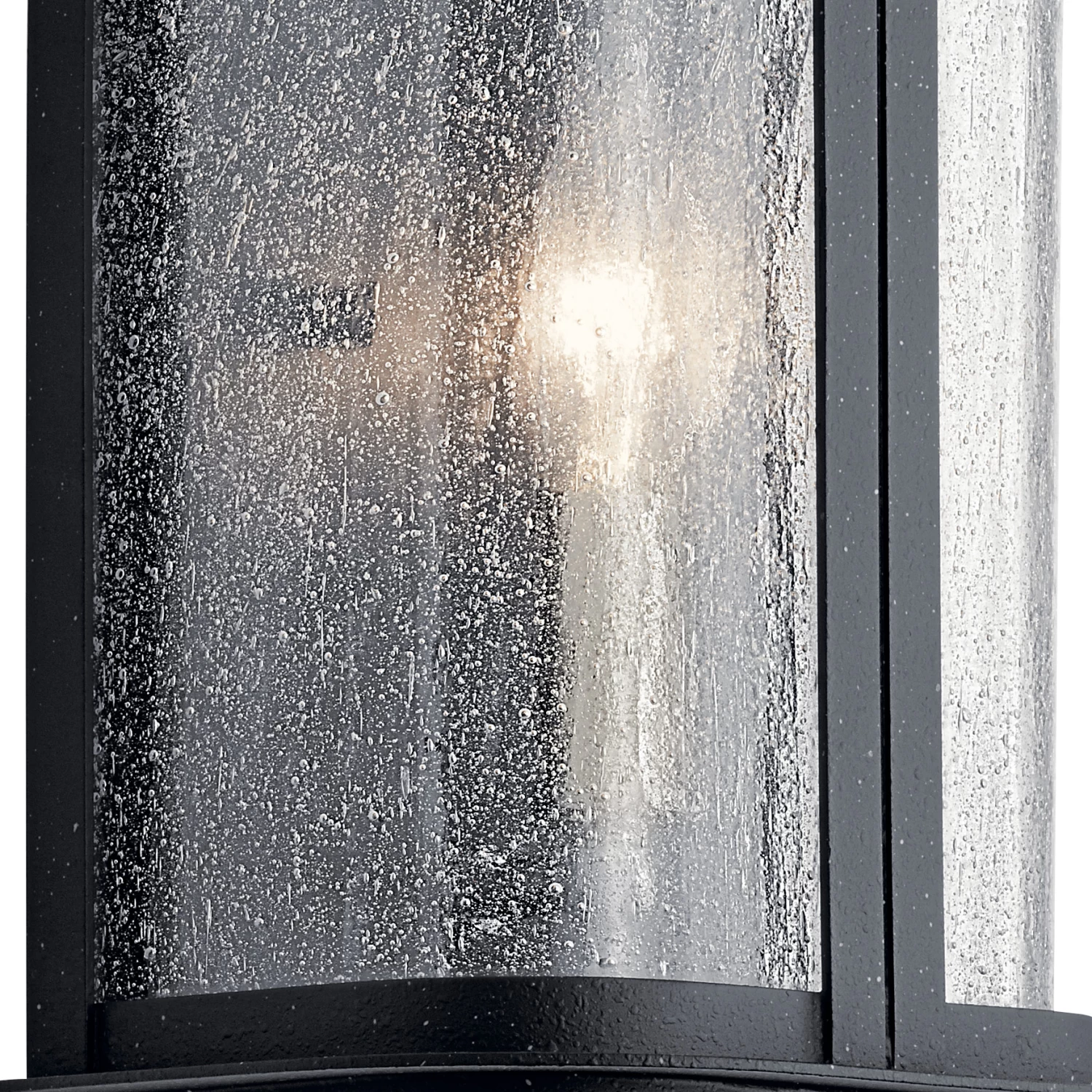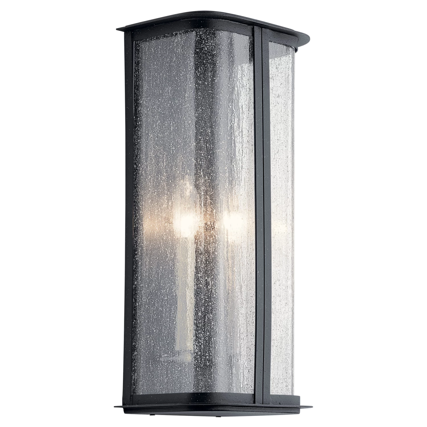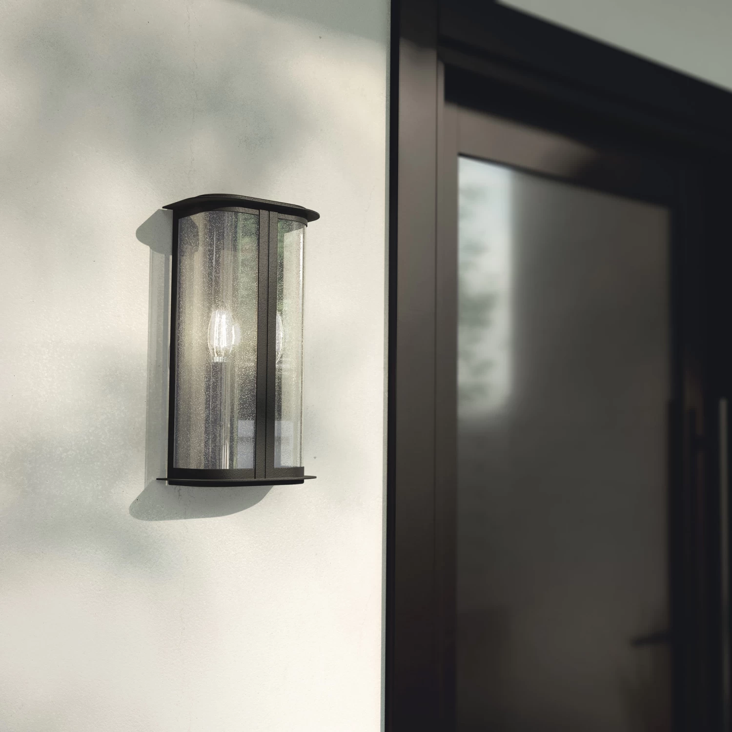 The Timmin Wall Sconce features a unique rounded-corner frame fully enclosed with clear seeded glass. This simple design brings a clean look to your garage door area, deck, or front porch.