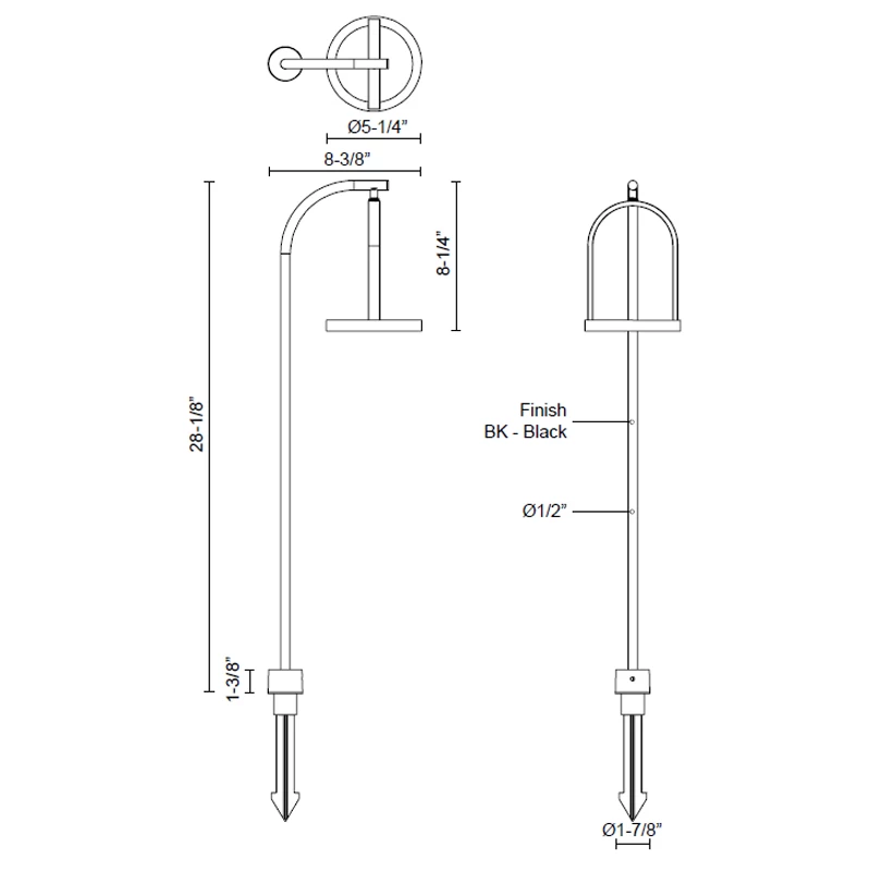 The Trek Outdoor Path Light is a modern take on the classic outdoor lantern. The unique silhouette brings clean lines with a circle of warm light to your exterior space. Frosted acrylic is complemented by a Black finish. Includes garden spike. Wet location rated. ETL listed. Required 12 volt outdoor rated remote transformer (by others), sold separately.