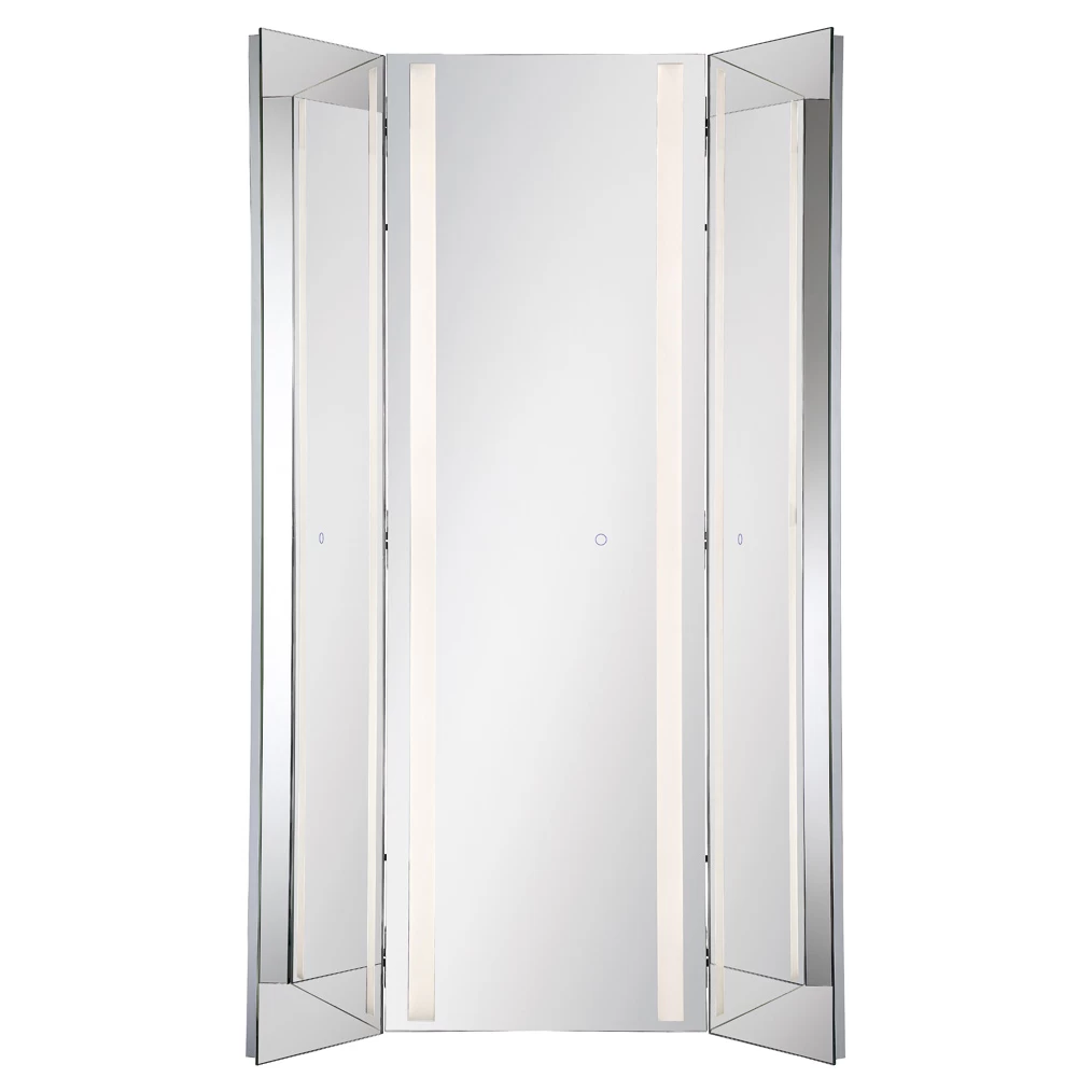 The Tri-Fold LED Mirror offers a sleek design, featuring a pair of back lit LED stripes placed in the center mirror, a tri-fold option for optimized viewing angles, and a touch sensor switch for easy on and off. Available in two sizes. Suitable for damp locations. ETL listed. ADA compliant.