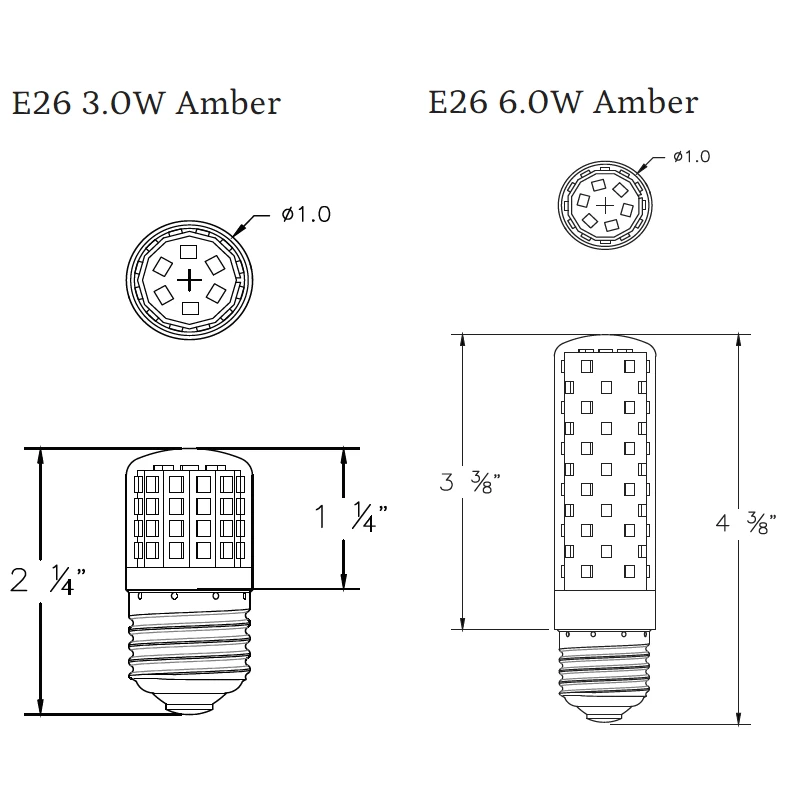 Tubular E26 Med Base Turtle 3W Amber 120V 2-Pack