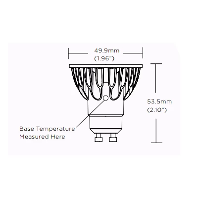 Vivid 3 7.5 Watt 120 volt LED GU10 base MR16 from Soraa with 10, 25, 36 or 60 degree beam angle in Very Warm White 2700K, Warm White 3000K, Neutral White 4000K. Equivalent to a 50 watt halogen. 35,000 hour average lamp life. With a CRI of 95, rich saturated color rendering and excellent color stability, the Vivid lamp is a great choice for demanding display applications. Saves over 85 percent of energy compared to standard halogen lamps. LED retrofit lamp to replace 120 volt MR16 GU10 base halogen lamps in recessed downlights, track lighting, and other applications. Dimmable to 20 percent with specific approved dimmers and transformers (see attached manufacturer specification for compatibility). UL listed. Suitable for fully enclosed fixtures and damp locations. Can be used with front glass cover. 3 year warranty. 1.96 inch diameter x 2.1 inch height.