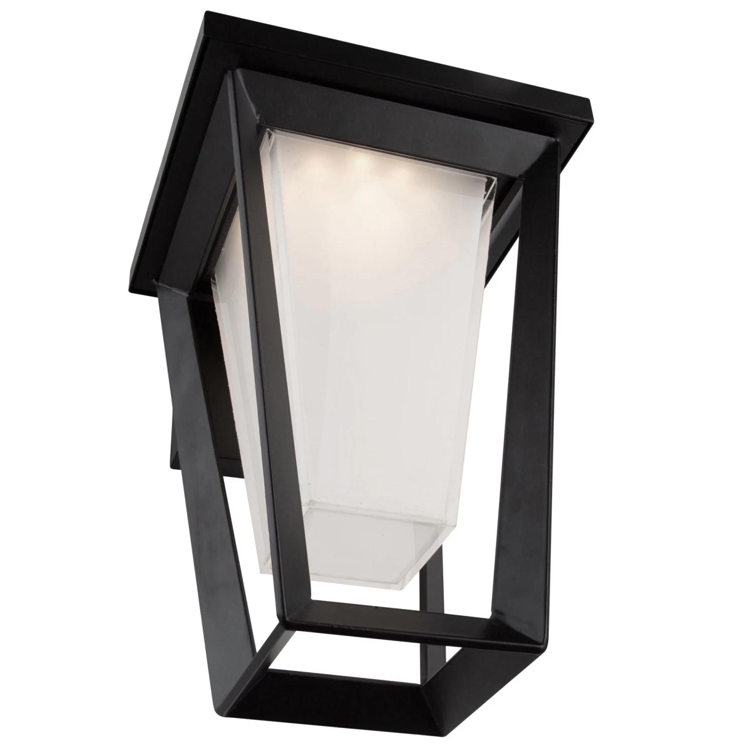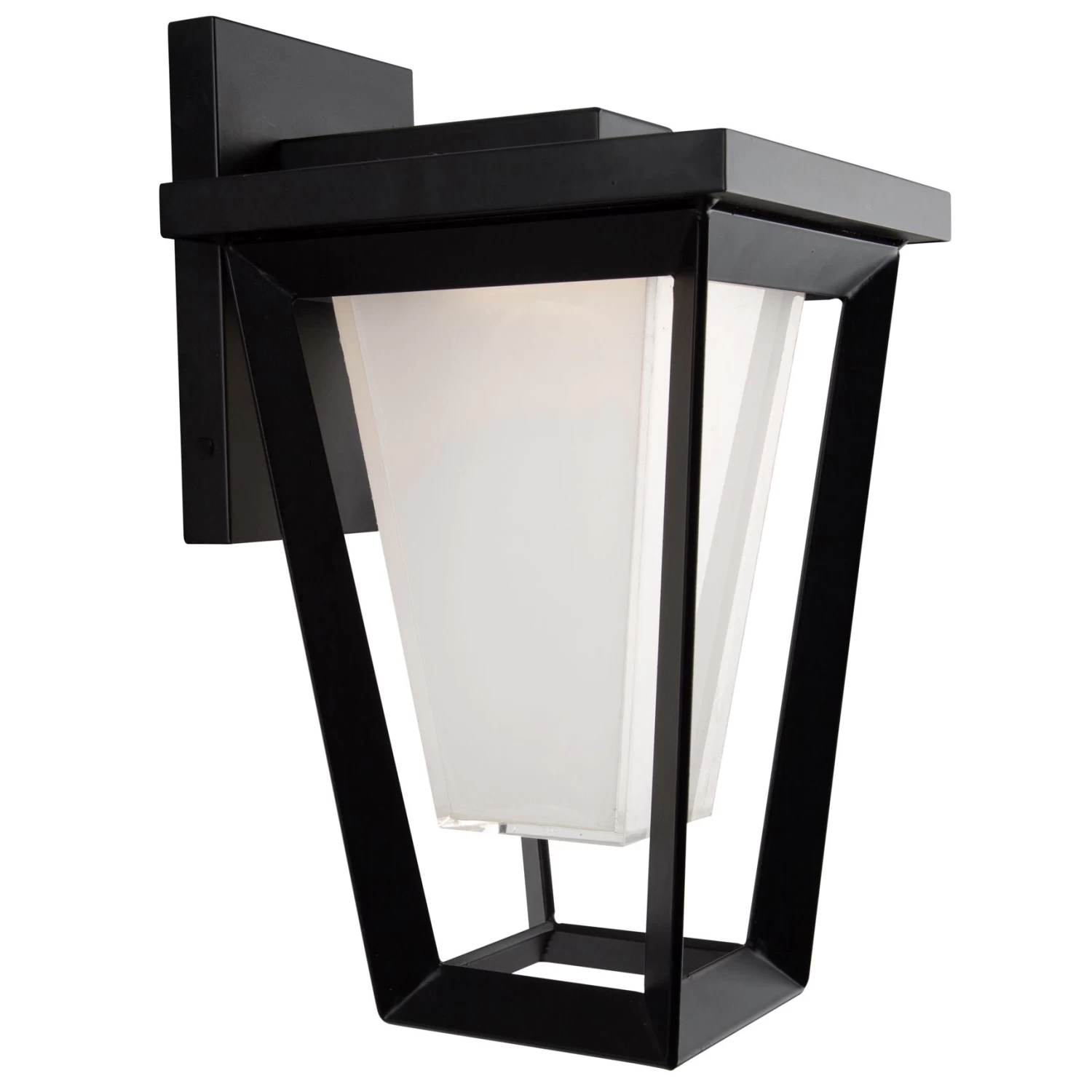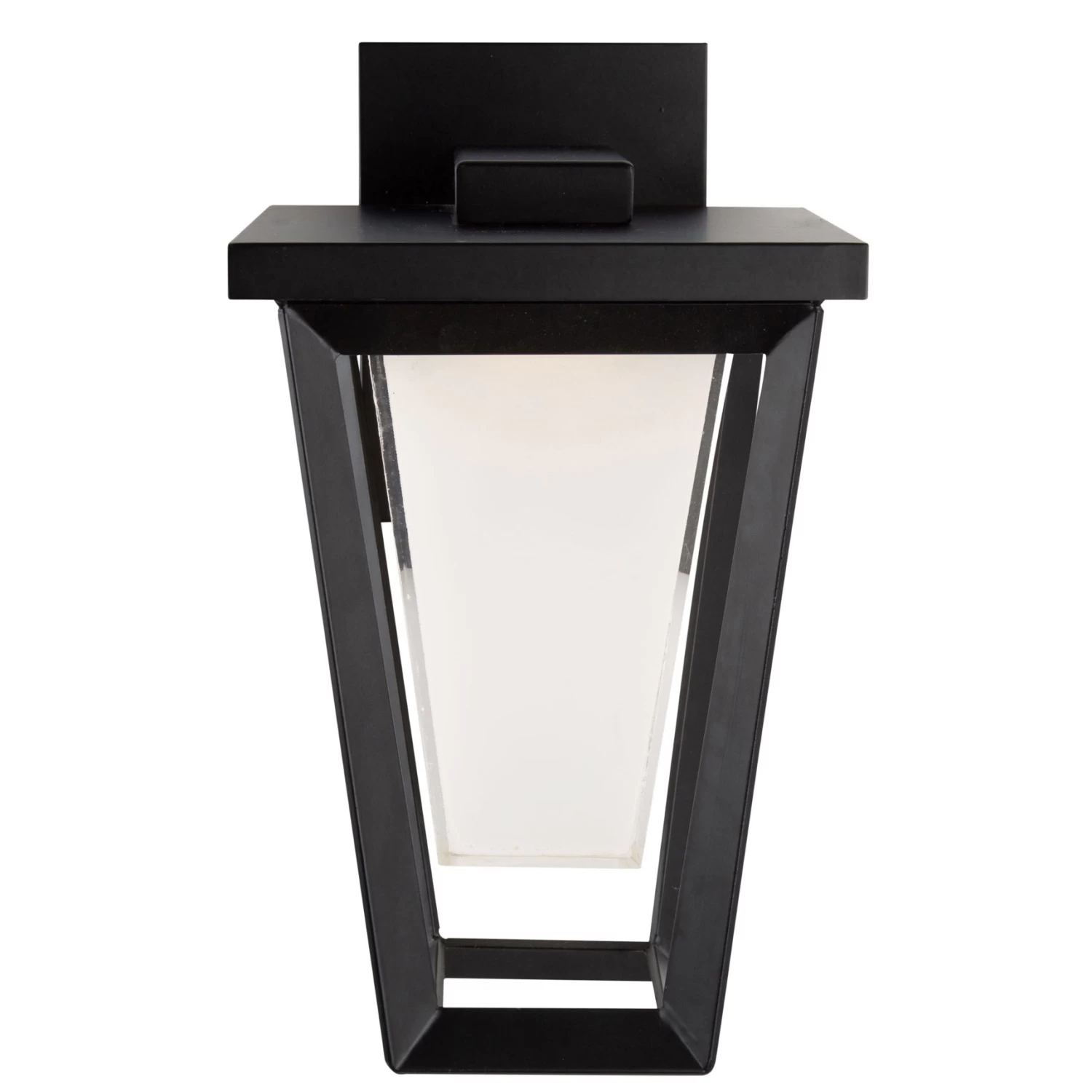 The Waterbury Outdoor Wall Light is an updated take on classic lantern-style fixtures. Waterbury’s angular frame gives it a modern expression that is still versatile enough to work with more traditional decor styles. The integrated LED is housed within an enclosed frosted diffuser to reduce glare and protect the light source from the elements.