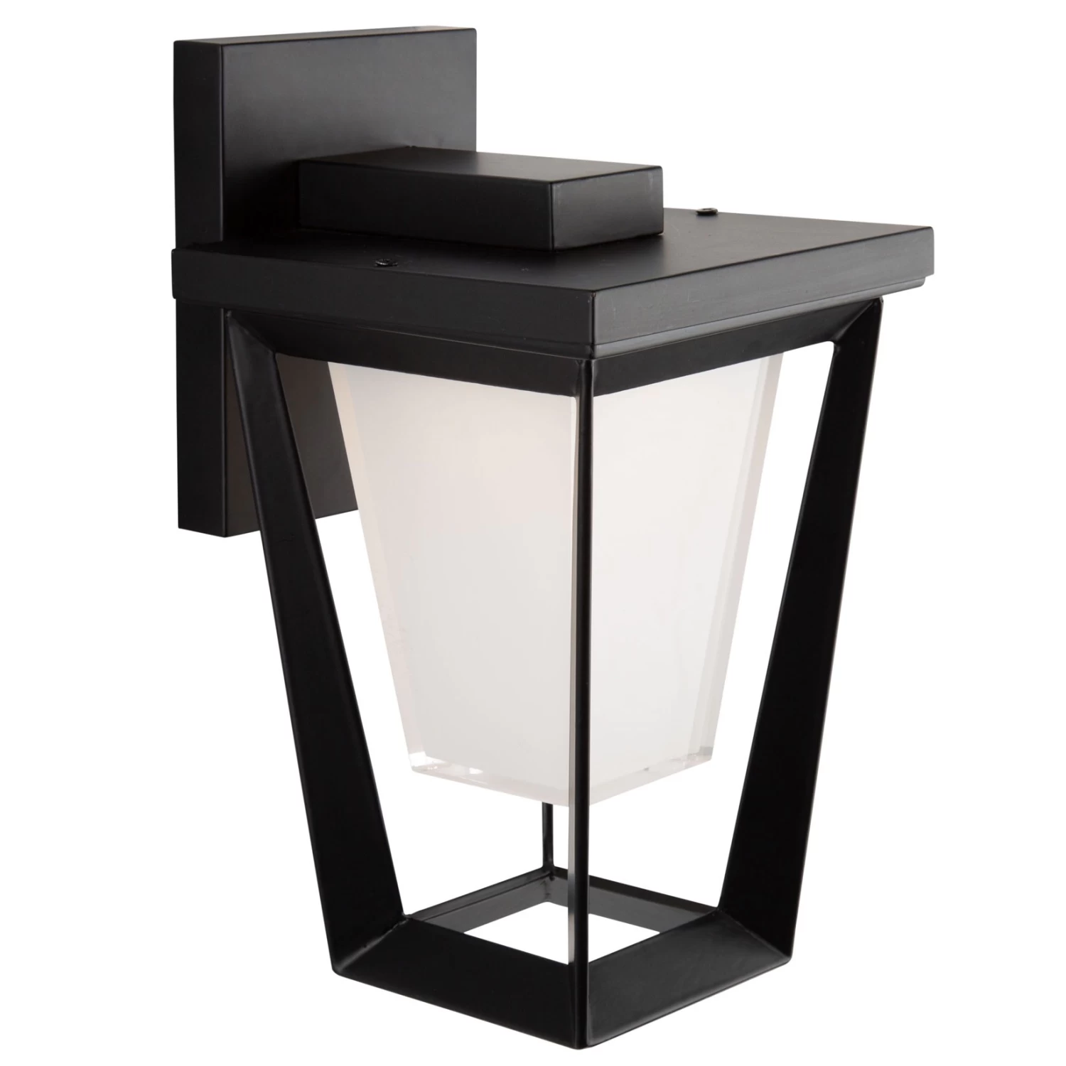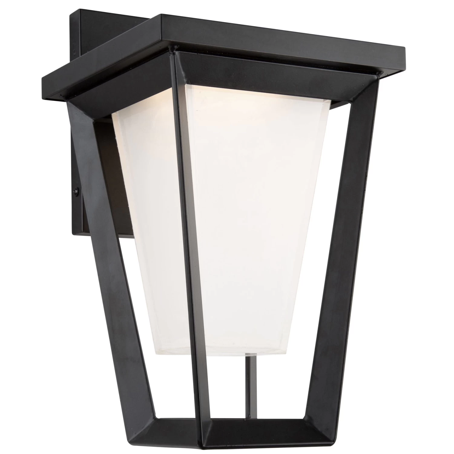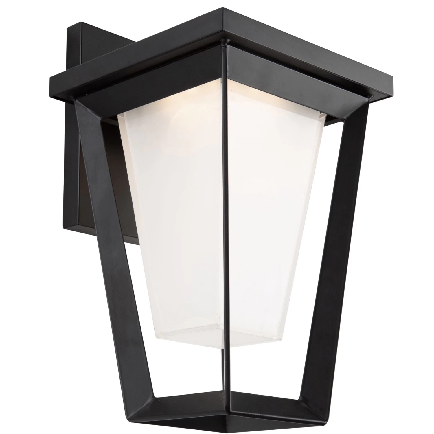The Waterbury Outdoor Wall Light is an updated take on classic lantern-style fixtures. Waterbury’s angular frame gives it a modern expression that is still versatile enough to work with more traditional decor styles. The integrated LED is housed within an enclosed frosted diffuser to reduce glare and protect the light source from the elements.