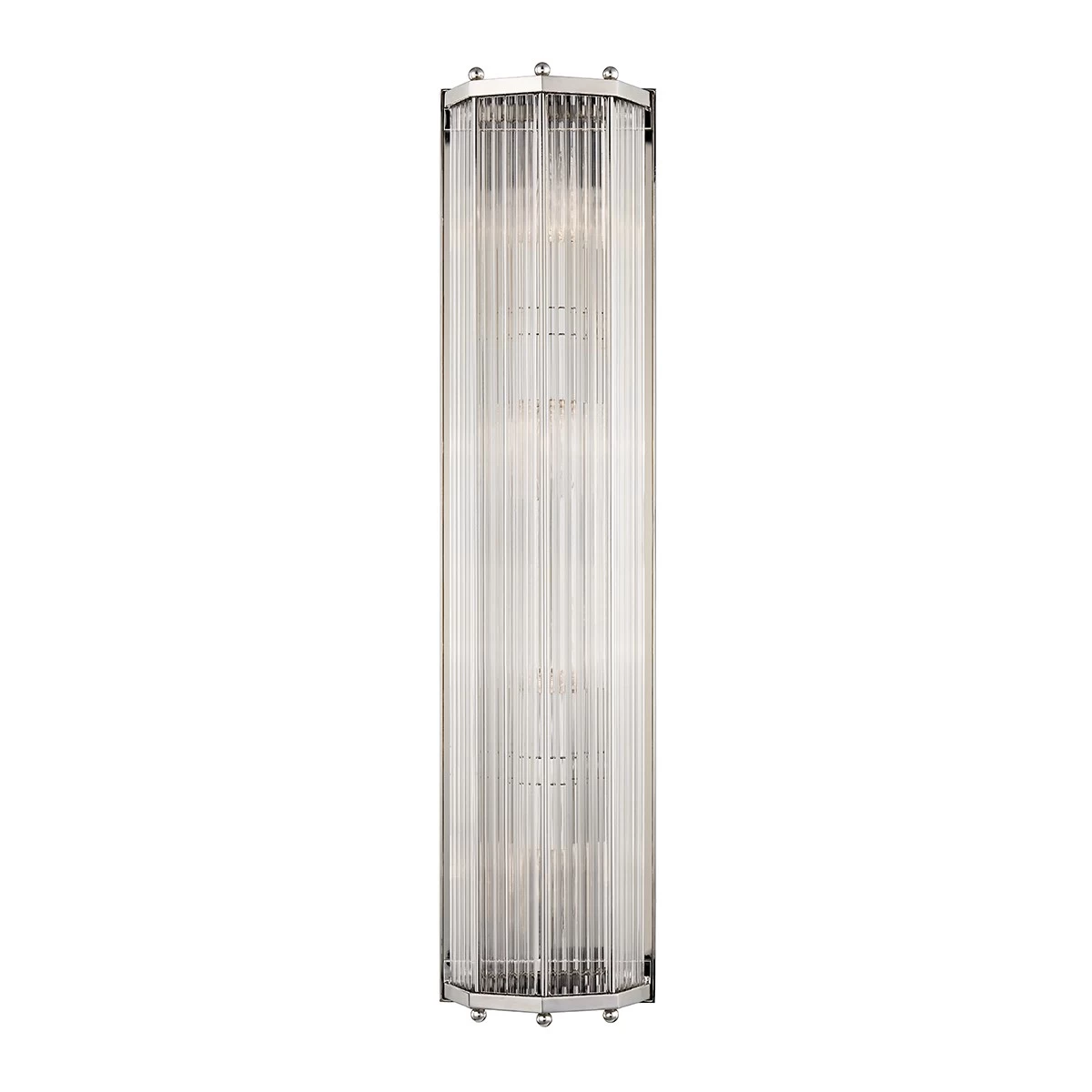 The Wembley Wall Sconce is a crisp sparkling piece, perfect in a variety of rooms in your home. Ribbed Clear glass is complemented by an Aged Brass or Polished Nickel finish. May be mounted horizontally or vertically. Available in two sizes. Damp location rated. UL listed.