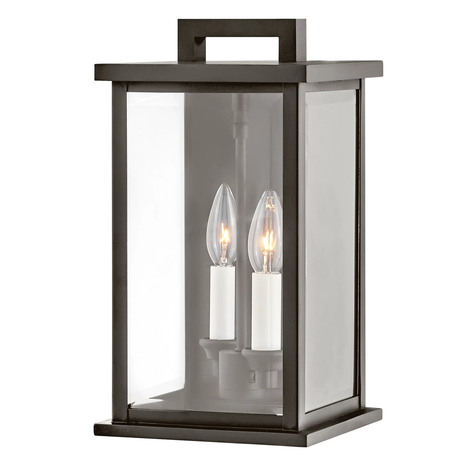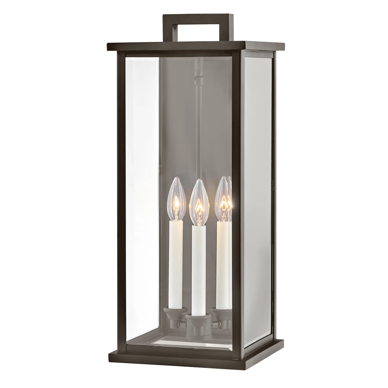The Weymouth Outdoor Wall Sconce evokes timeless elegance with a contemporary edge. A robust Aluminum Cast frame holds in a beveled glass casing that protects the inner candle sleeves from the harsh elements of Mother Nature.