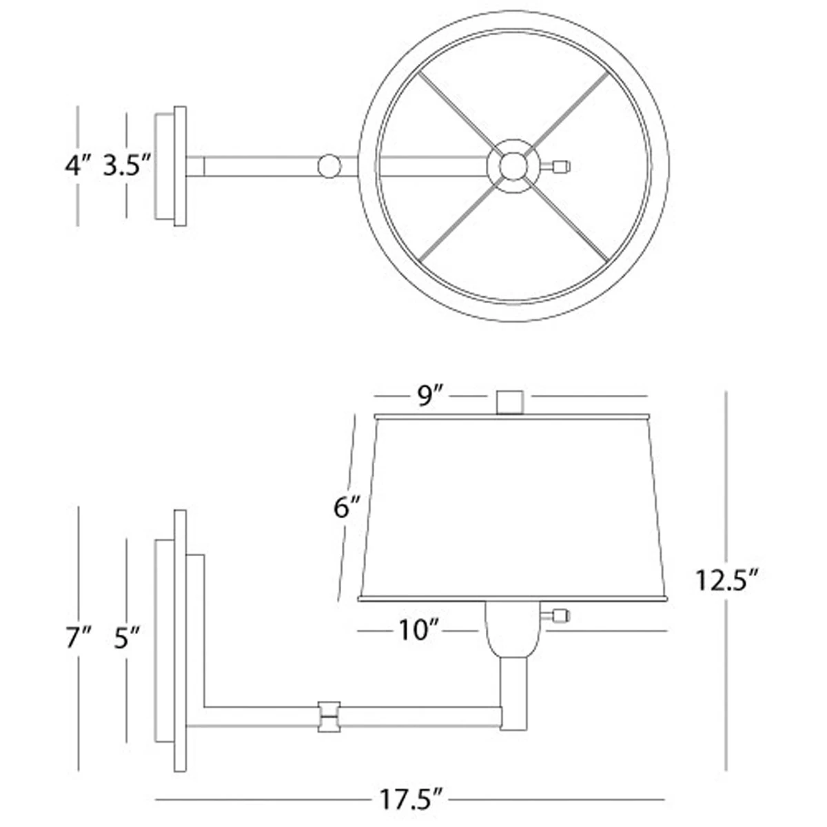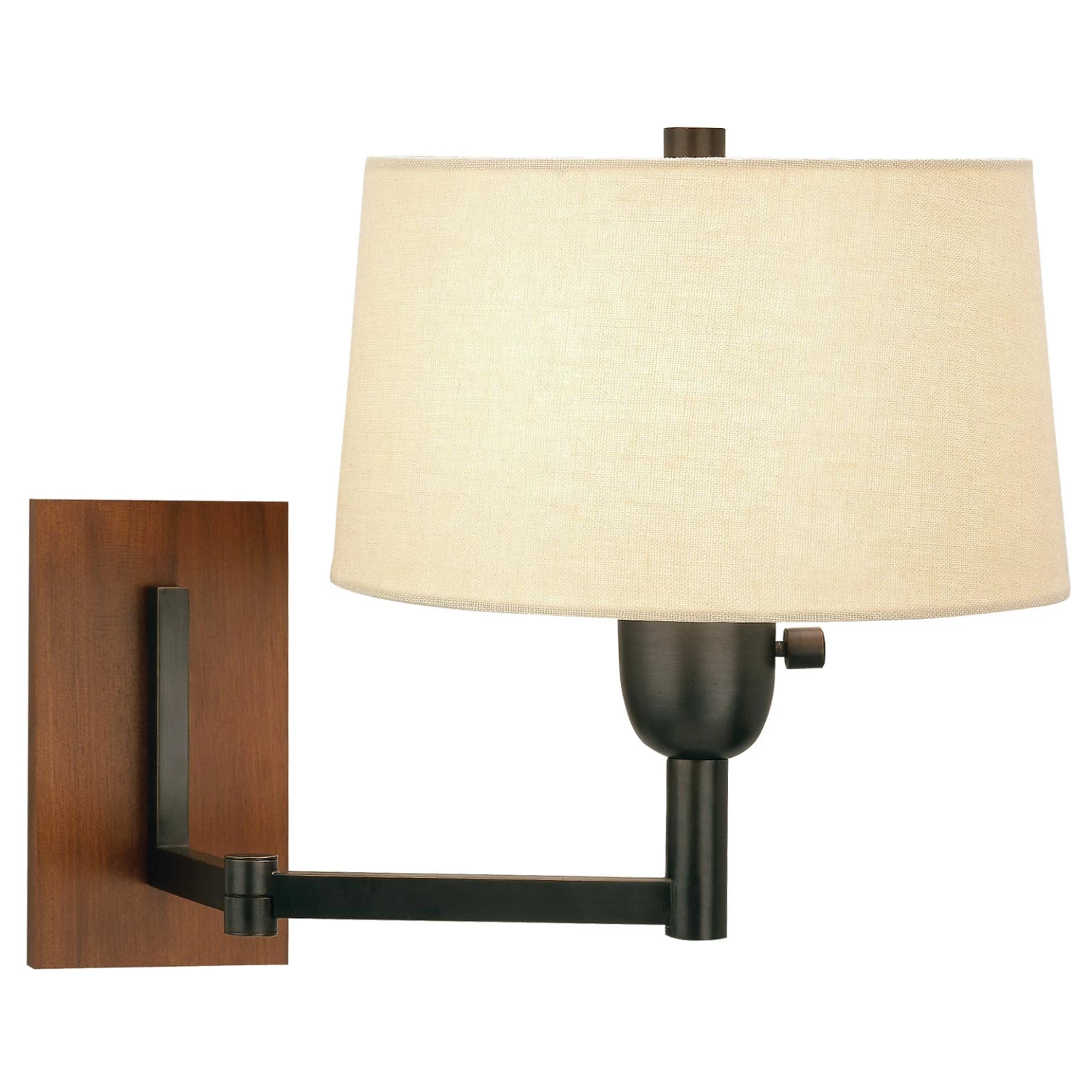 Wonton Reading Arm Wall Sconce features a metal finish and wood accents with a linen shade. Includes full range dimmer, 144 inch cord and plug, and 24 inch cord cover for optional plug-in mounting. UL listed. Note: Canopy is only 3.5 inch wide and will not cover a standard US junction box – requires a 2×4 junction box.
