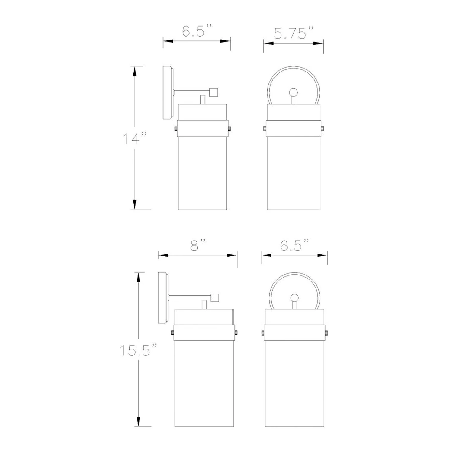 | Size | 5.75"W x 14"H x 6.5"D |